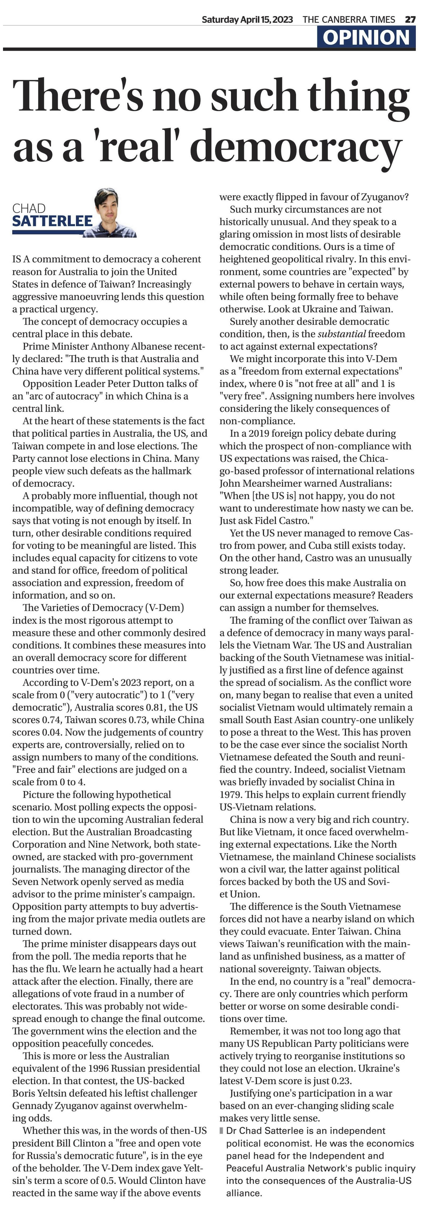 The Canberra Times, April 15, 2023, p. 27.