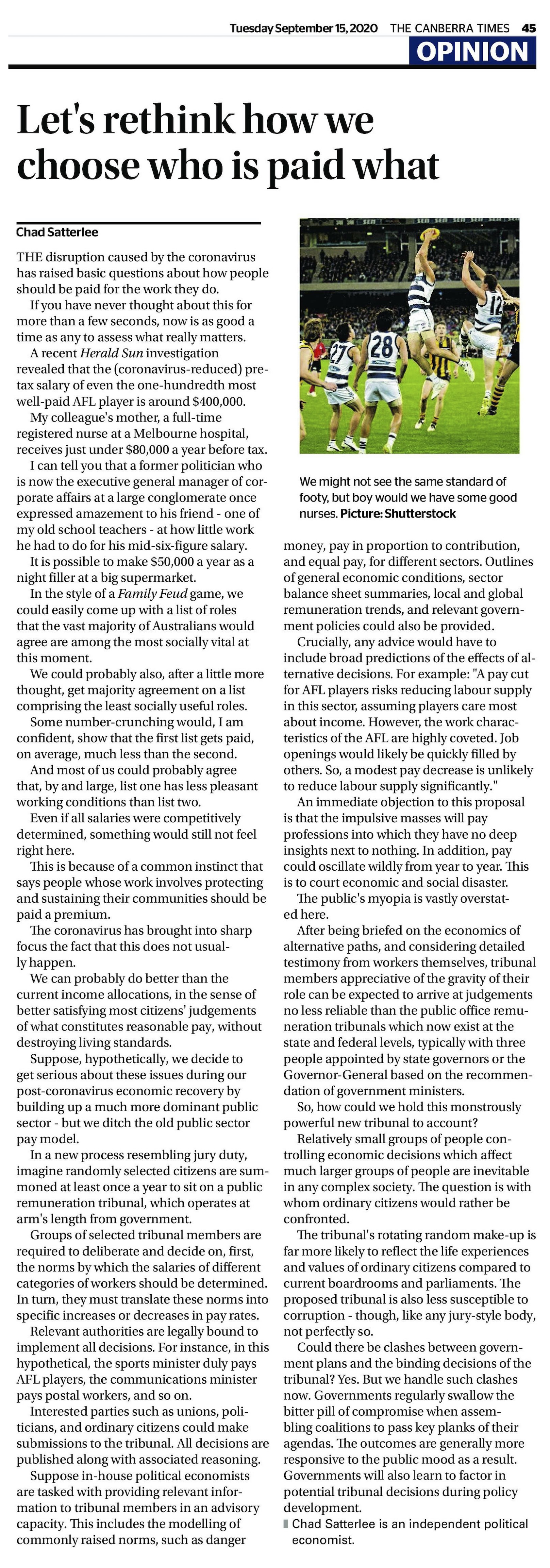 The Canberra Times, September 15, 2020, p. 45.